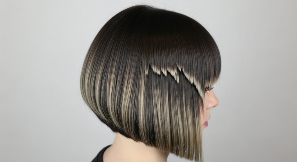 Can’t decide between a blunt cut and a textured one? You can have the best of both worlds. This hybrid style keeps the solid, heavy weight line of a blunt bob but introduces chaos and movement at the very ends. The bottom inch or two of the hair is heavily textured, creating a “shattered” effect that contrasts beautifully with the clean lines above it.