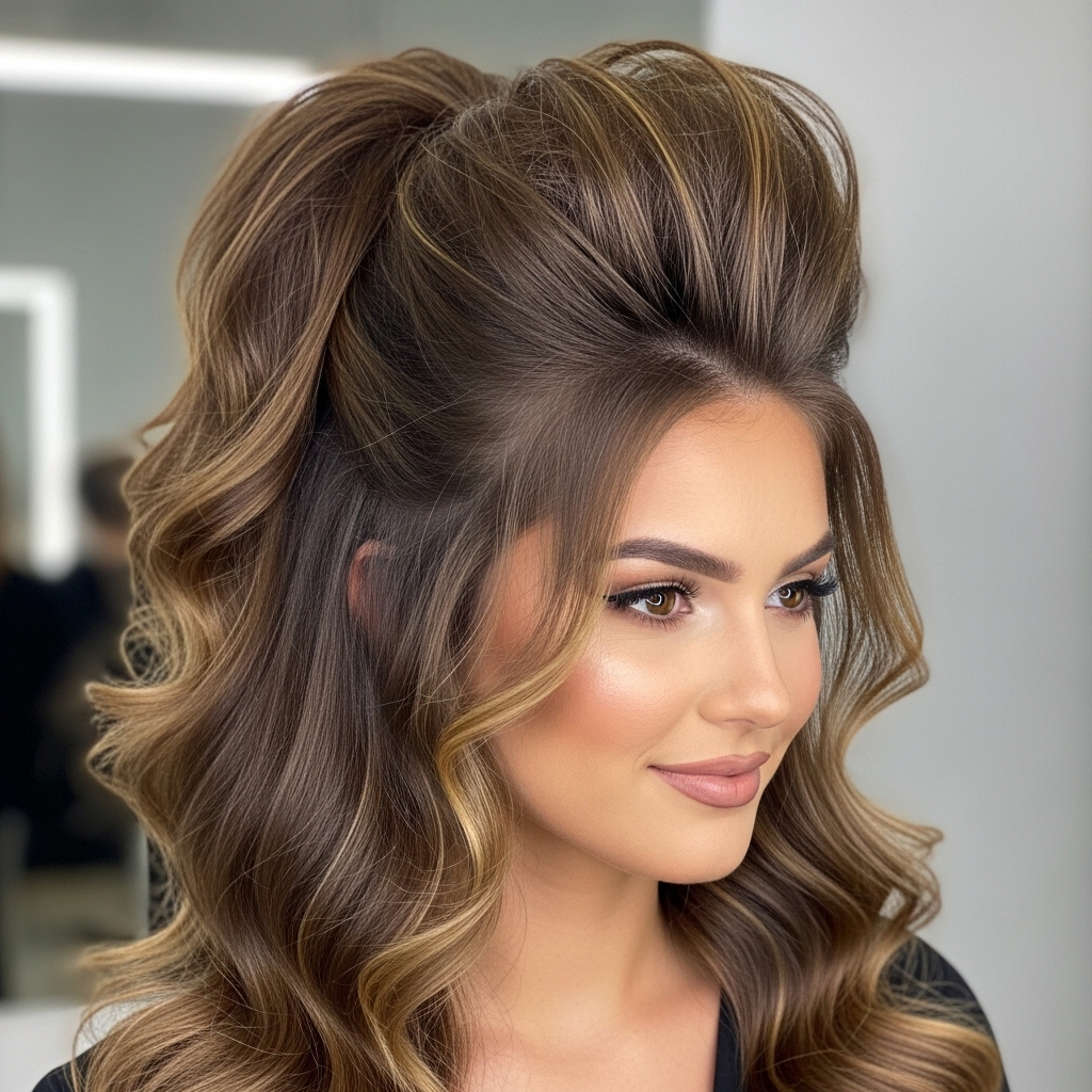 This style is all about volume and attitude. Instead of slicking everything back perfectly, you’ll create height and texture at the crown. Tease the hair at the crown of your head gently to build a base of volume. Then, gently smooth the top layer of hair over the teased section, pulling it back into a high ponytail. Don’t press down too hard; you want to maintain that lifted “pouf” effect. This style pairs perfectly with a textured or wavy ponytail to balance the sleekness on top with movement down below.