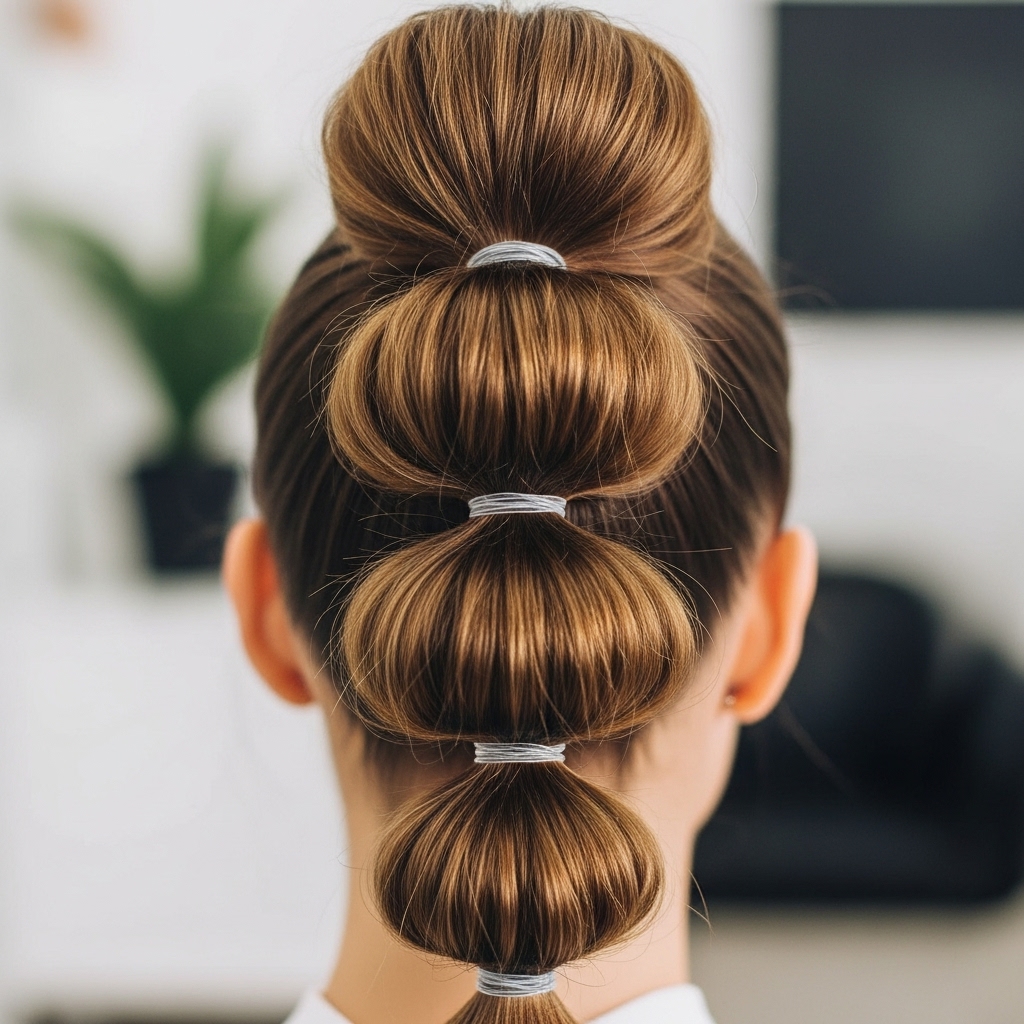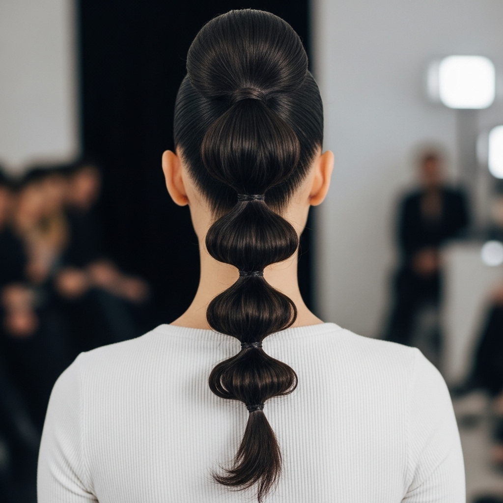 Playful yet polished, the bubble ponytail adds instant volume and a touch of whimsy. Create a standard high, mid, or low ponytail and secure it tightly. Then, take small, clear elastic bands and space them out evenly down the length of the tail. After each band is secured, gently tug on the section of hair between the elastics to puff it out, creating a series of “bubbles.” For a more dramatic effect, you can slightly pull at the sides of each bubble to make it larger and rounder. It’s a fun, eye-catching twist that works beautifully on both straight and curly hair.