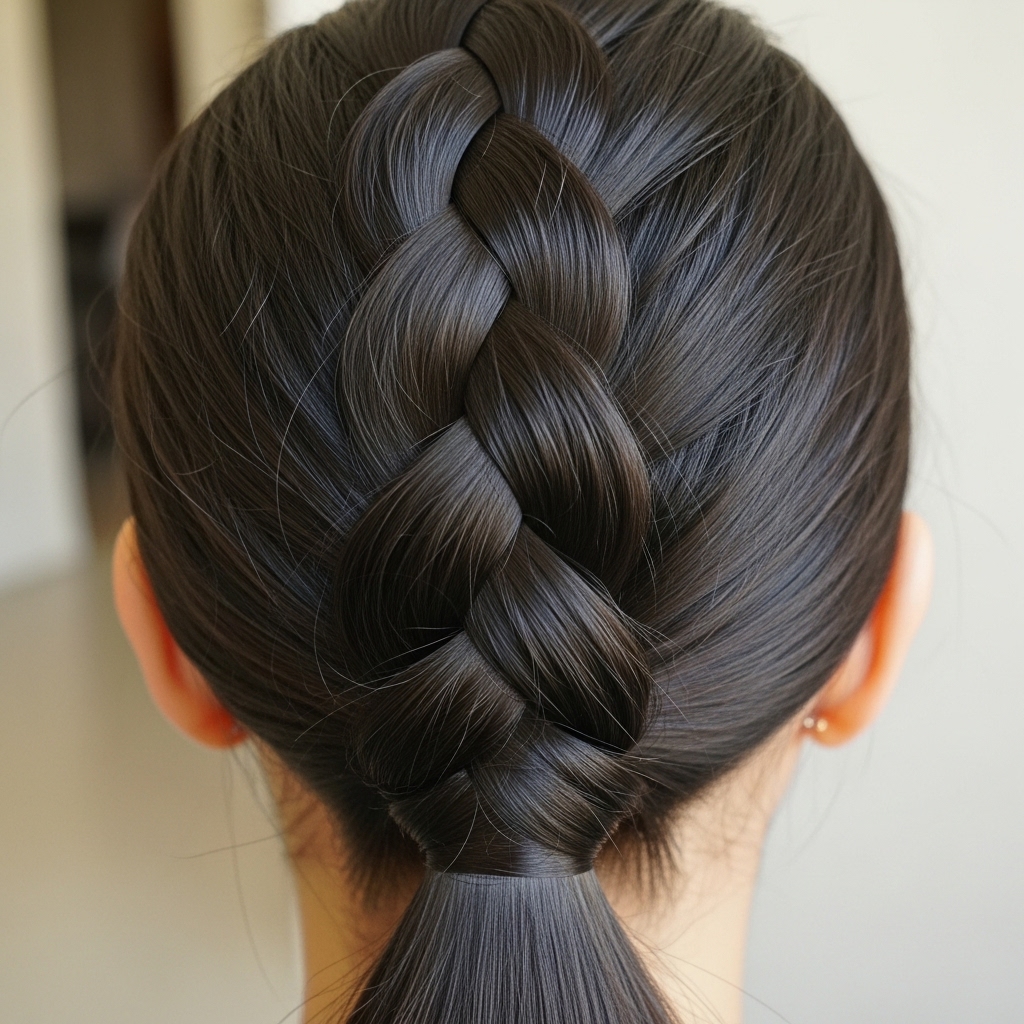 Elegant and simple, this style adds a touch of detail without being overwhelming. Create a low or mid ponytail. Then, split the tail into two equal sections. Twist each section individually in the same direction, and then twist them both together in the opposite direction to form a secure, rope-like plait. Secure the end with a clear elastic. This technique gives the ponytail a beautiful, defined texture that looks far more intricate than it actually is.