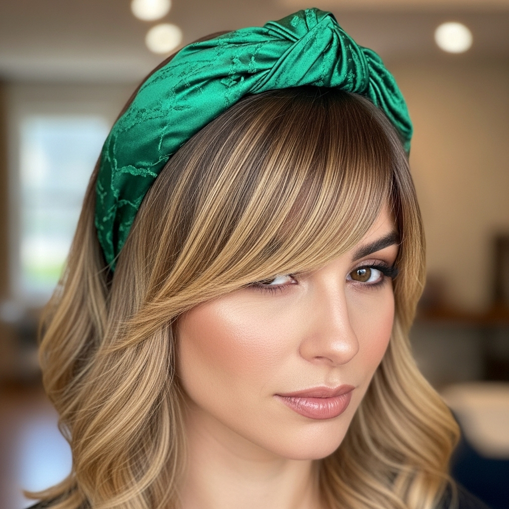 A headband is a fantastic tool for styling angled bangs. Choose a thin, elegant headband or a wider, fabric one. Place it over your hair, just behind your hairline, allowing your bangs to fall naturally in front of it. This contains any flyaways and adds a preppy or boho accent to your outfit.
