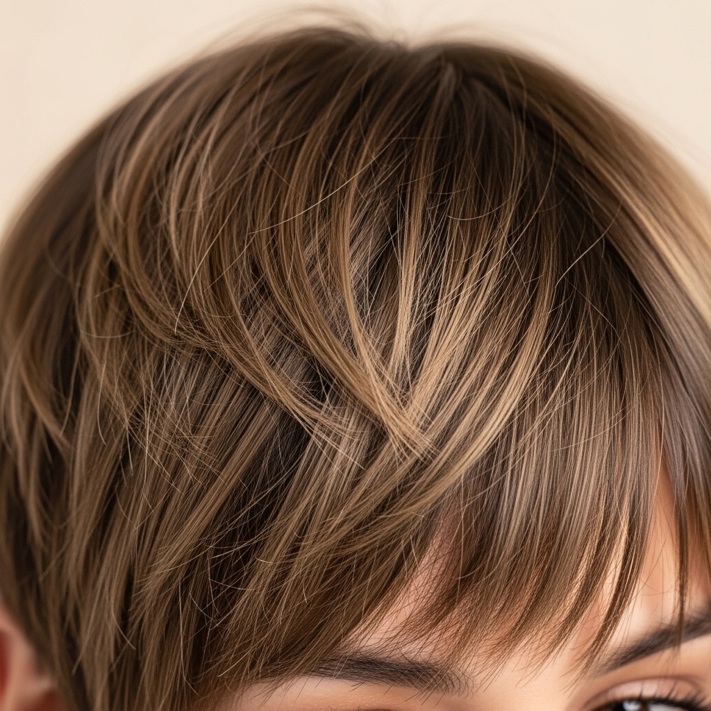 If you have a shag or layered cut, your angled bangs are the star of the show. Embrace the edgy, textured layers by using a diffuser when you dry your hair. Scrunch in a mousse or sea salt spray to enhance the natural movement and volume. This look is all about effortless, rock-and-roll cool.
