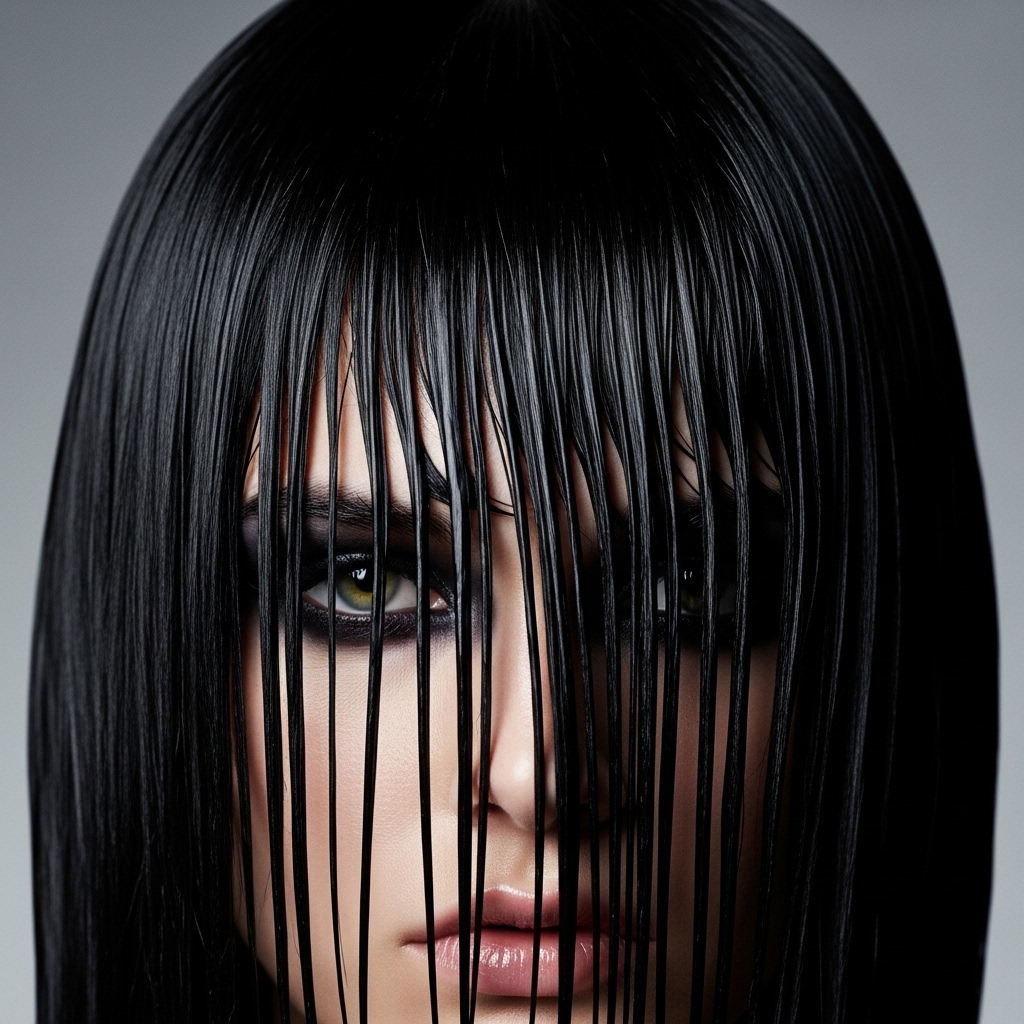 Embrace high-fashion drama with the wet look. This style turns your straight bangs into a glossy, sculptural element. After styling your bangs as usual, apply a generous amount of strong-hold gel or a high-shine pomade. Use a comb to slick them down perfectly, ensuring there are no stray hairs. You can wear them straight across or slightly pushed to the side for a more dynamic feel. This look is a showstopper for parties and editorial-inspired photoshoots.