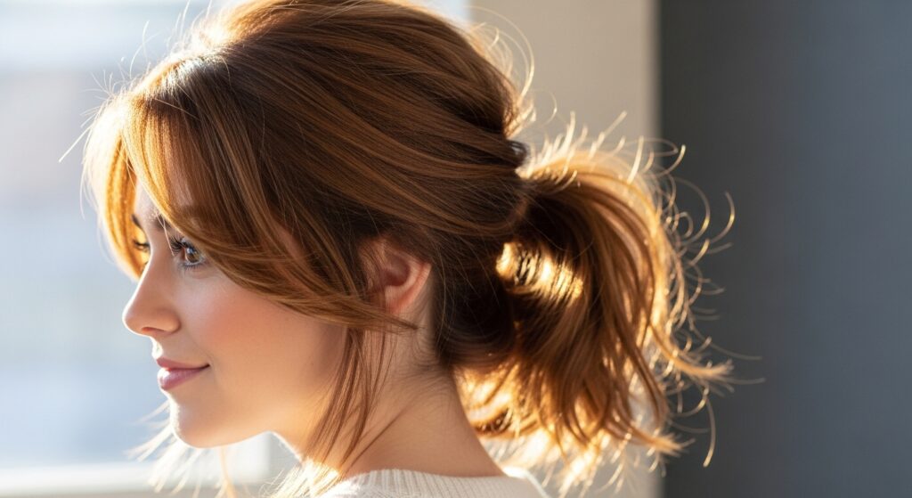 Forget the sleek, high-tension ponytail. The textured ponytail is your new best friend. Your layers are the key ingredient here. Simply flip your head over, gather your hair at the nape of your neck, and secure it with a coil-free hair tie. The goal isn’t perfection. Gently pull out a few face-framing pieces and loosen the crown of your head for instant volume and a soft, romantic feel.