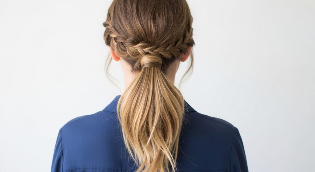 Elevate a simple low ponytail by adding a braided detail. Create a small, loose braid on one side of your head, just above your ear. Instead of braiding all the hair, incorporate it into a low ponytail with the rest of your hair. This adds a touch of elegance and interest, and your layers will soften the entire look.