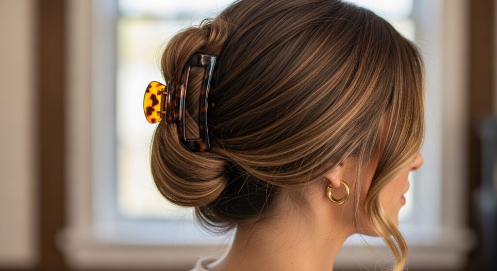 The claw clip is back and better than ever. It’s the ultimate quick fix for layered hair. Twist your hair loosely at the nape of your neck, coil it up, and secure it with a large claw clip. Don’t worry about making it neat—let your layers fall where they may. It creates a chic, effortless updo that works for everything from the office to a dinner date.