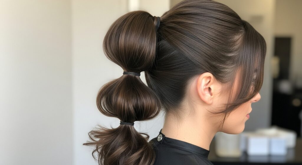 This fun, modern look is surprisingly easy. Put your hair in a high or low ponytail. Space out hair ties down the length of the ponytail, about 3-4 inches apart. Gently tug on the sections between the ties to puff them out and create the “bubble” effect. Your layered ends will add to the playful texture.