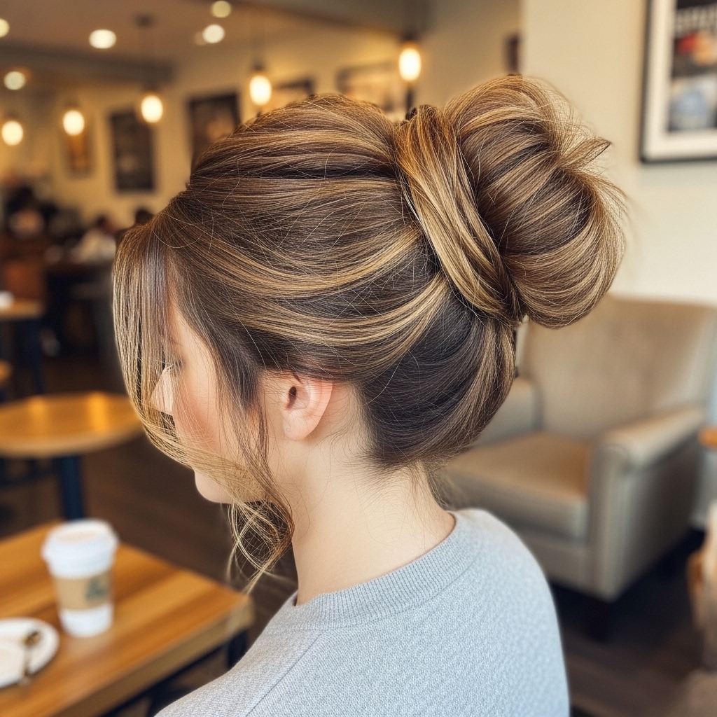 This is the ultimate style for showcasing your layers while keeping hair out of your face. It’s casual yet put-together. Simply take the top section of your hair, from the temples back, and gather it into a small ponytail or bun at the crown. The key here is to be deliberately messy. Leave out your curtain bangs and shorter layers around your face. This creates a soft, romantic look that frames your features beautifully while the rest of your layered hair flows freely.