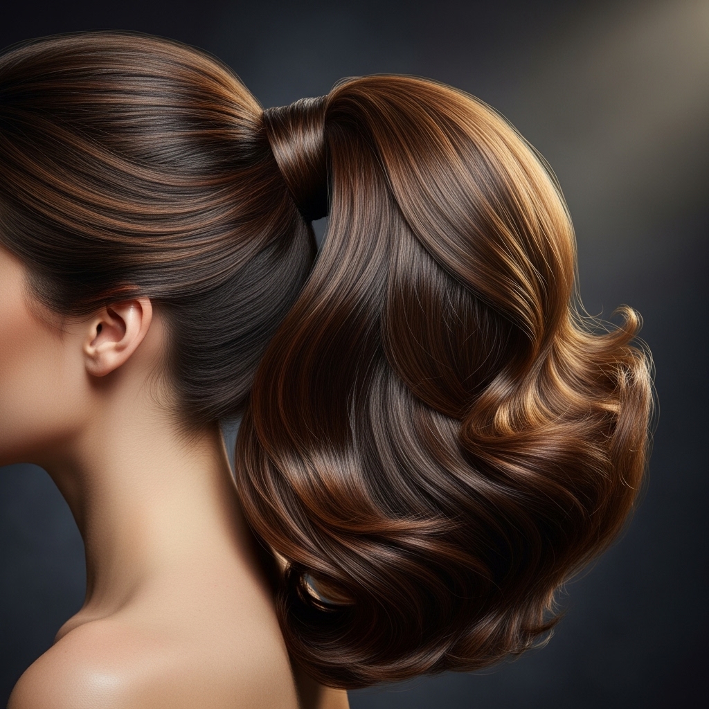 This style is all about the drama at the crown. Tease the hair at the crown of your head to create significant volume—a “poof” or “quiff.” Gently smooth the top layer over the teased section, then gather all your hair into a mid-height or low ponytail. This look emphasizes the height on top while the layered ponytail provides movement below.