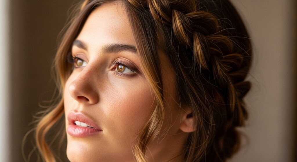 Embrace your inner bohemian goddess with a braided crown. Create two loose braids on either side of your head—Dutch or simple three-strand braids both work beautifully. Gently pull them apart to make them look fuller. Then, drape them over the top of your head like a crown and pin them securely in place. Let the rest of your wavy hair flow down. This is a stunning style for festivals, weddings, or any occasion that calls for a touch of romance.
