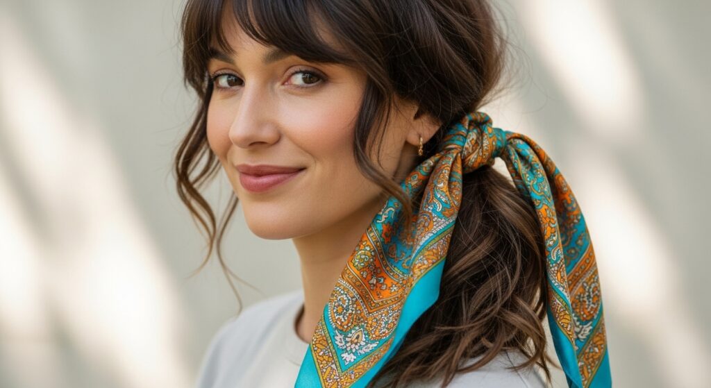 Elevate any basic wavy style with a silk scarf. You can tie it around a ponytail or bun, use it as a headband, or even weave it into a braid. The scarf adds a pop of color and pattern, making your hairstyle look intentional and chic. This is a quick way to transform your everyday waves into a style statement without any heat styling.
