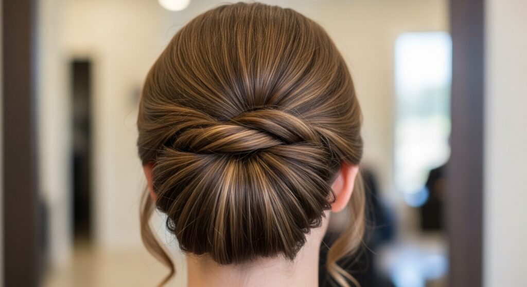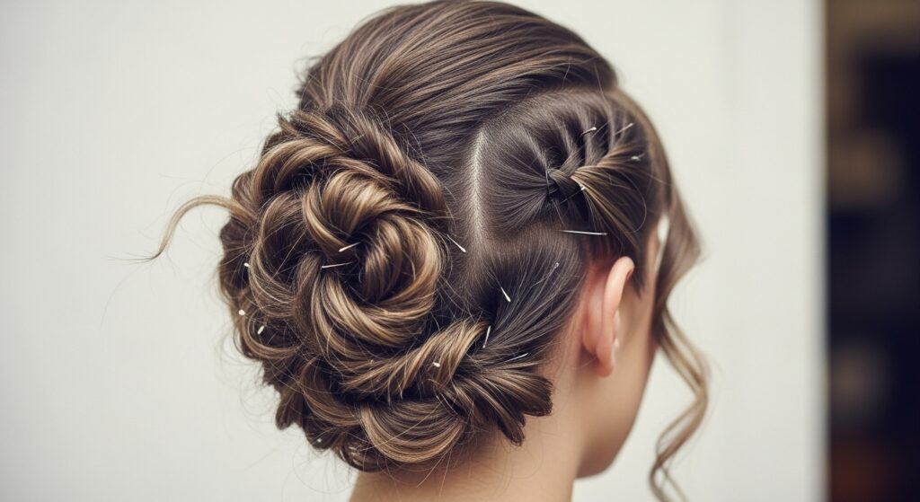 This style is for when you want something unique and artistic. Separate your hair into two large sections. Twist each section loosely and then twist them around each other. Instead of securing the ends into a tight bun, simply coil the intertwined twists into a loose, messy bundle at the back of your head and pin it securely. The resulting updo has incredible texture, depth, and a beautifully undone aesthetic.