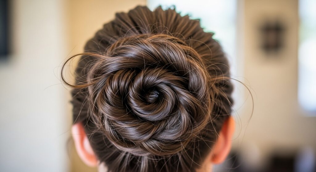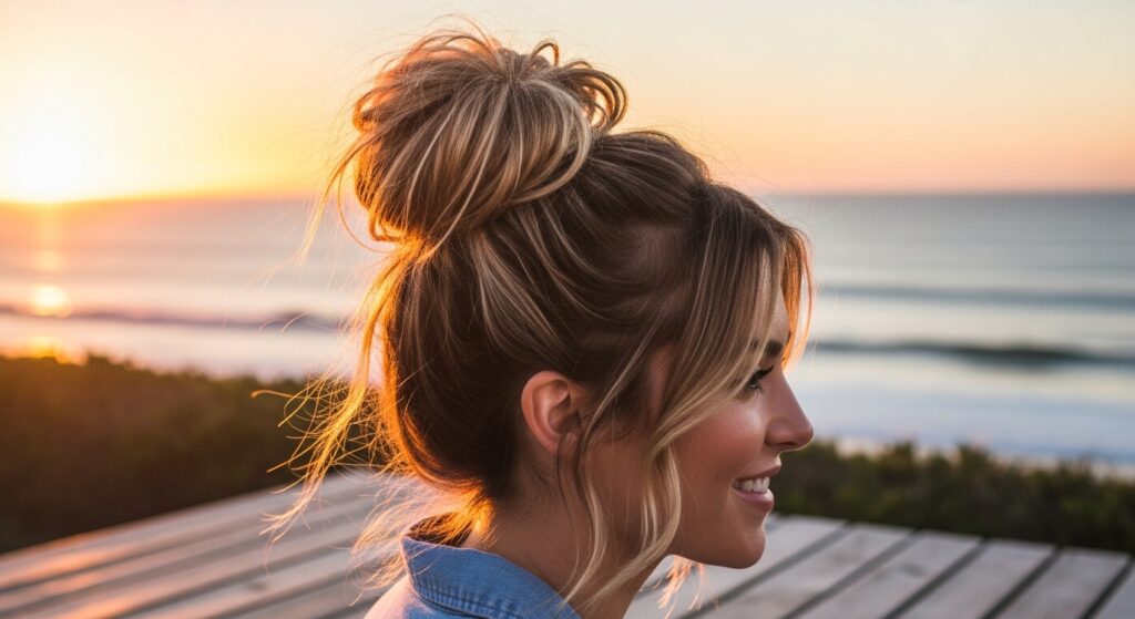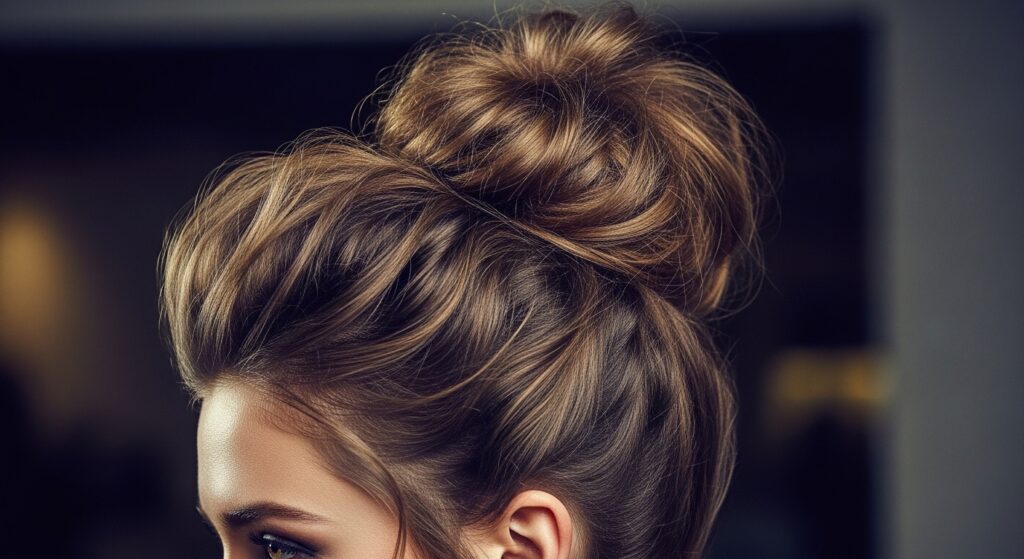 Take the messy bun to new heights—literally. The voluminous top knot is a statement-maker. Tease the crown section of your hair slightly for extra lift before gathering it into a very high ponytail. When forming the bun, don’t wrap it tightly; instead, loop the ponytail loosely and secure it, then pull the sides to create a larger, more dramatic knot. This style is perfect for when you want to look polished and fashion-forward with minimal effort.