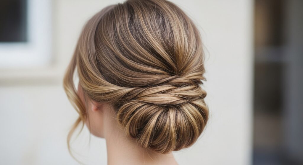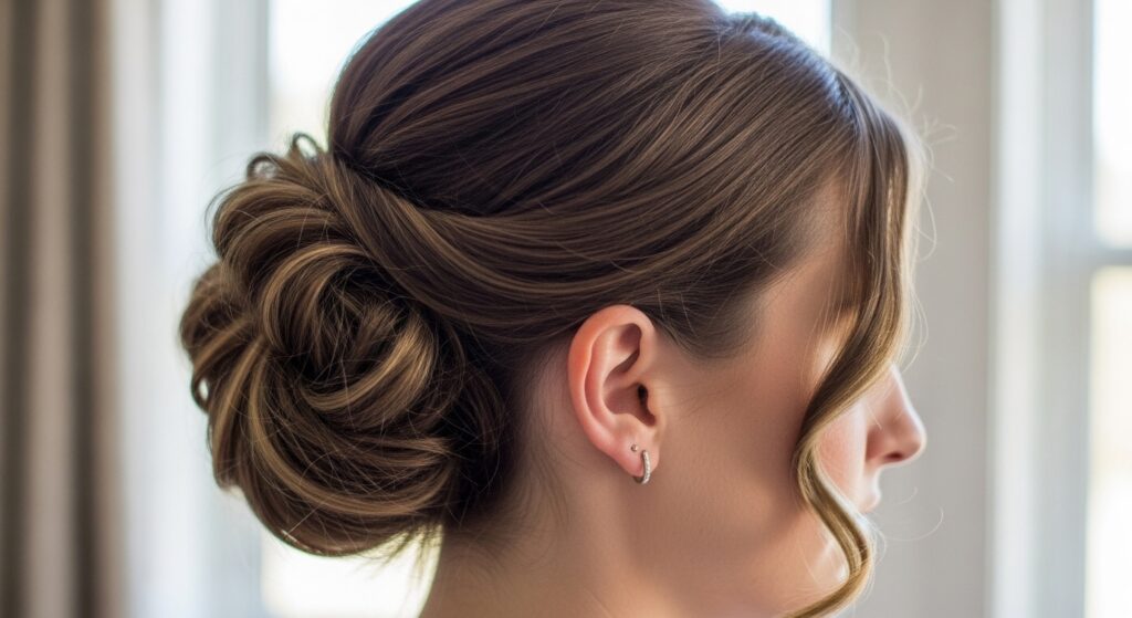 For an aura of sophisticated elegance, the low, loose chignon is unmatched. Positioned at the nape of your neck, this style is incredibly graceful. Twist your wavy hair loosely as if you’re making a low bun, but instead of coiling it tightly, allow the ends to flow out and the waves to create a soft, unstructured shape. Secure with pins and pull out a few waves around your face and neck to soften the look. It’s the ultimate choice for a black-tie event, a professional setting, or a romantic dinner.