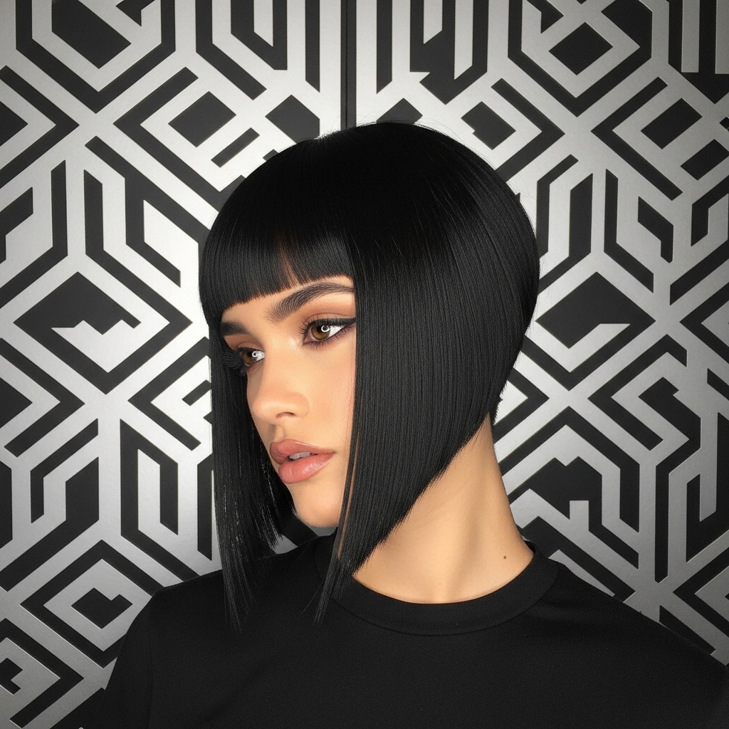 It’s graphic and geometric. Keep the front pieces sharp and the back neatly trimmed. This is a truly artistic and bold look.