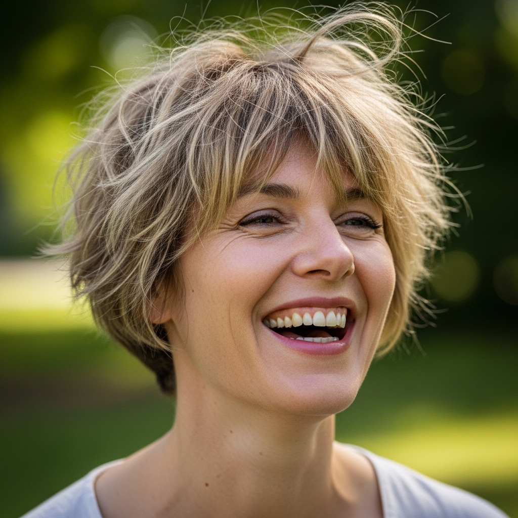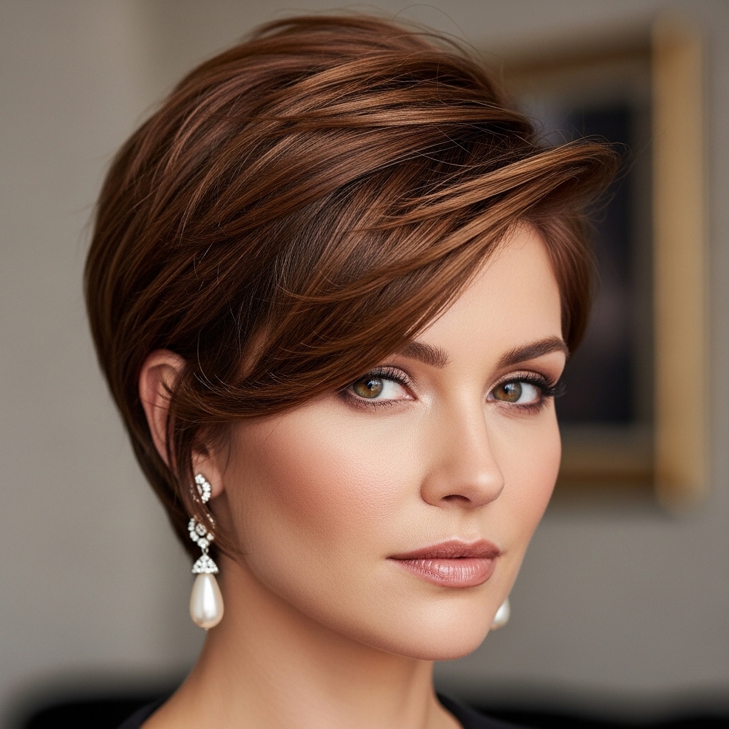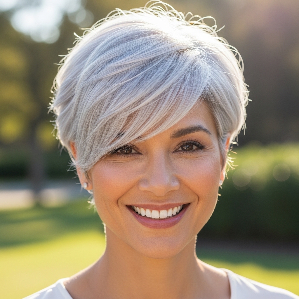 It’s the perfect blend of a bob and a pixie—short, chic, and packed with personality. It’s low-maintenance but high-impact. This cut isn’t about hiding your age; it’s about showcasing your confidence.