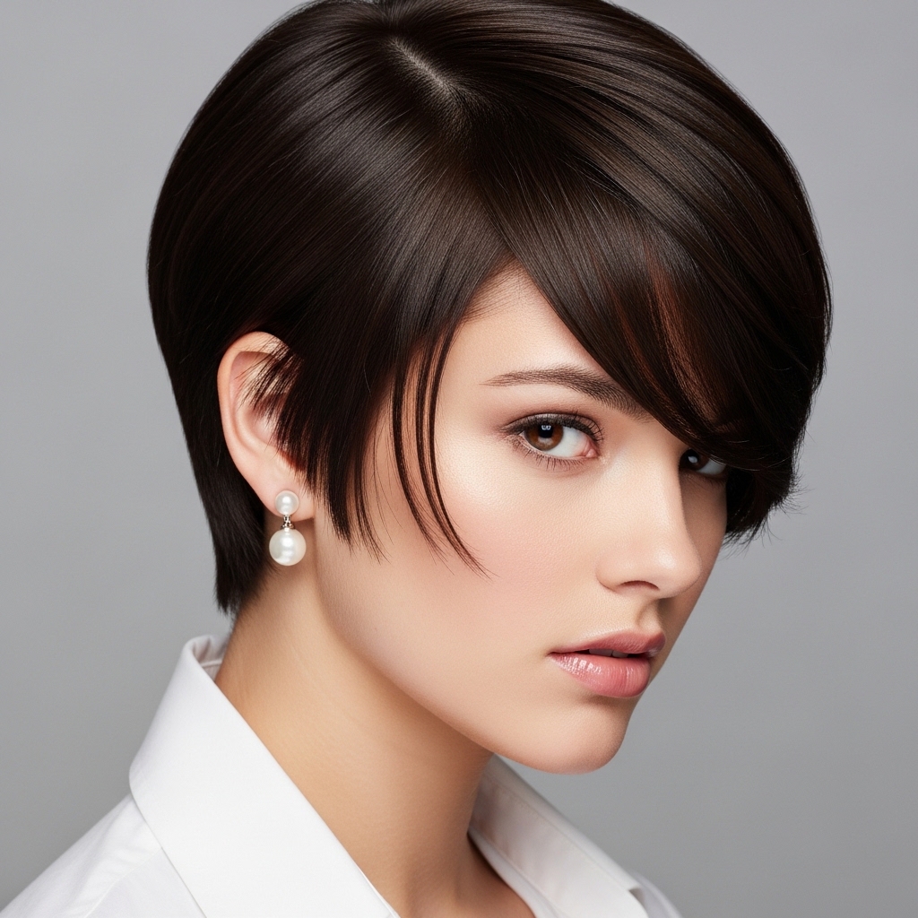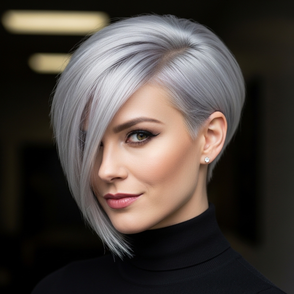 This cut is a standout for 2026 hairstyles. The longer side can sweep across the forehead or tuck behind the ear. It’s bold, confident, and utterly captivating.