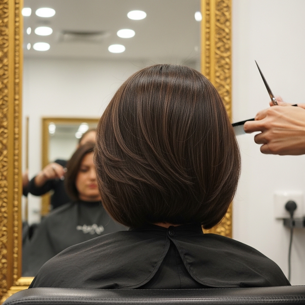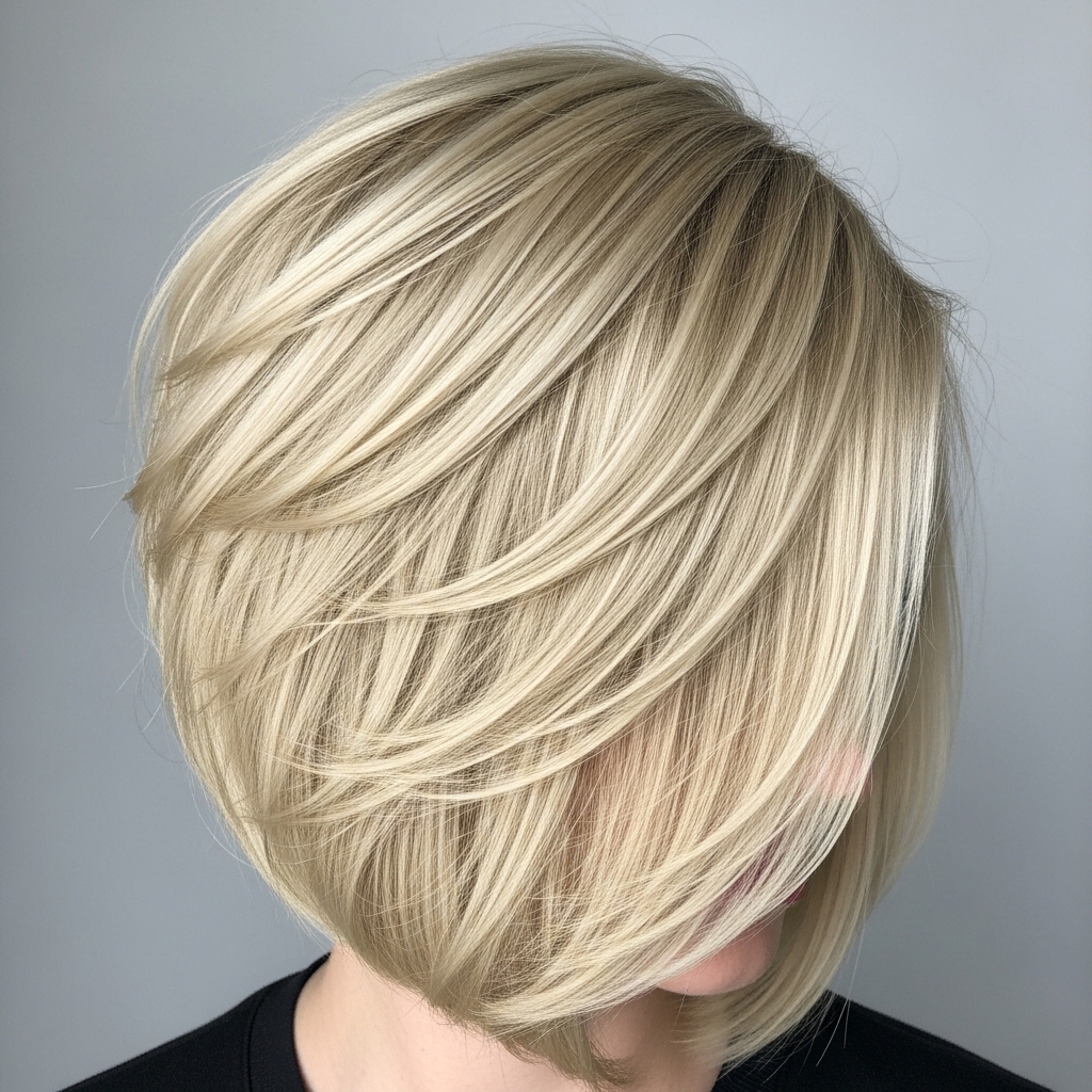This is the architectural star of bobs. The back is cut in graduated, stacked layers that build volume precisely at the crown, while the sides are left longer and smoother. It’s a 360-degree style with amazing shape.