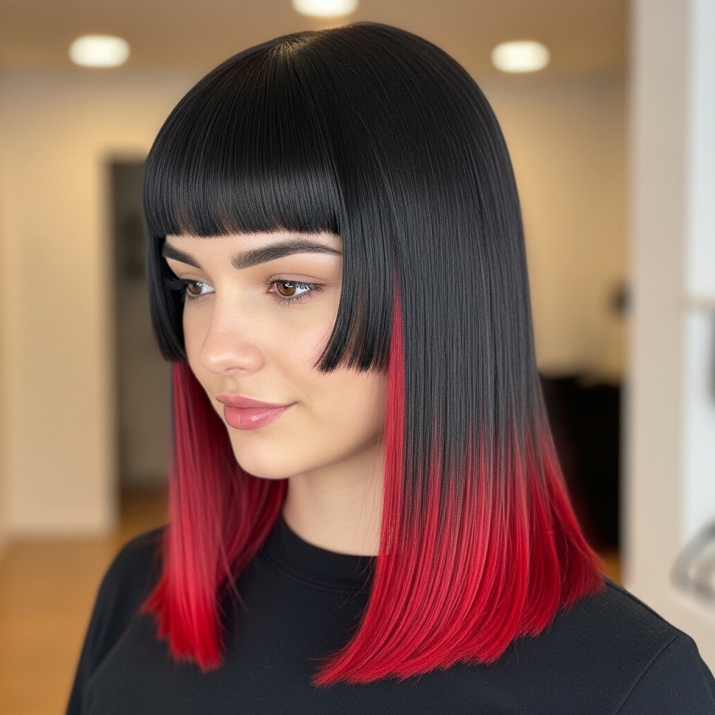 Minimalism meets maximum drama. From the top, this style looks like a simple, sleek, and dark curtain of hair. But when you turn your head or run your fingers through it, the hidden red is revealed. It’s a fantastic surprise element.