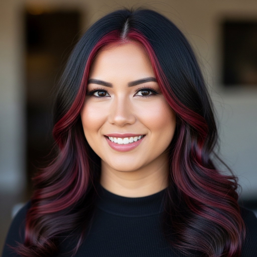 Red is the ultimate accent for this look. It’s passion, it’s fire, it’s that one stunning detail that takes a style from pretty to powerful. Whether you want a full head of crimson or just a hidden flash of color, it’s all about the effect.