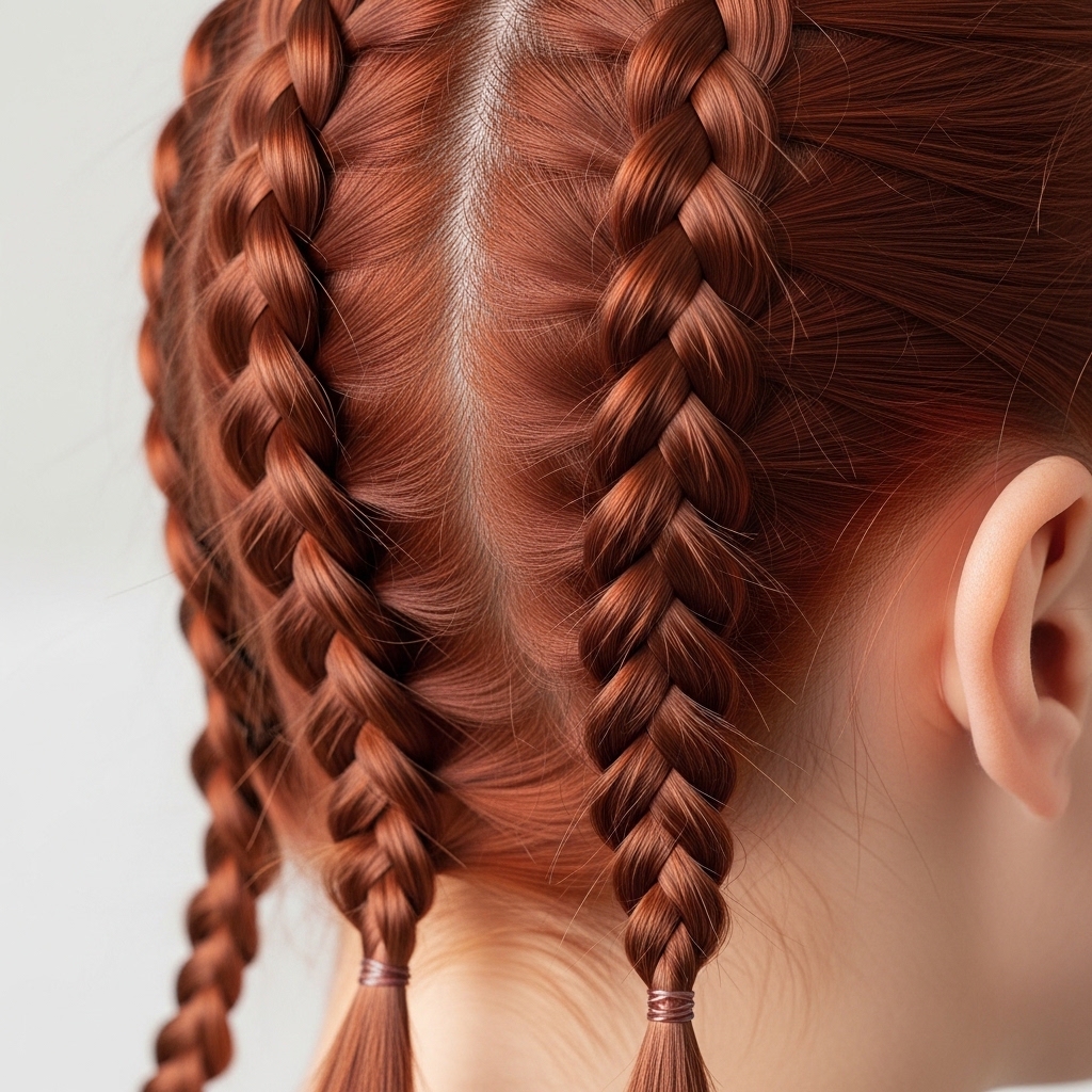 - As you braid, incorporate a pre-colored red extension or a dedicated section of your hair.