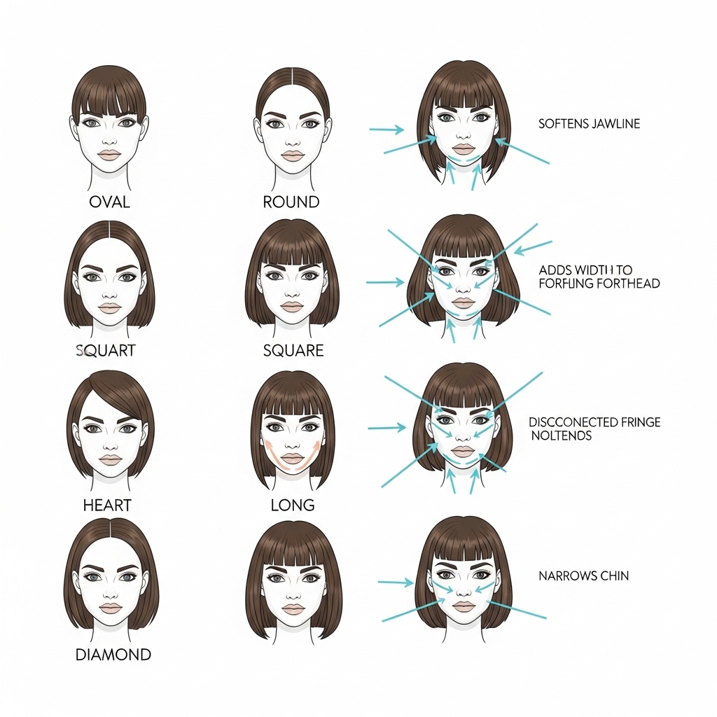 This fringe is surprisingly versatile! It’s fantastic for oval, square, and heart-shaped faces, as it creates strong angles that balance softness. The blunt line can help shorten a longer face.