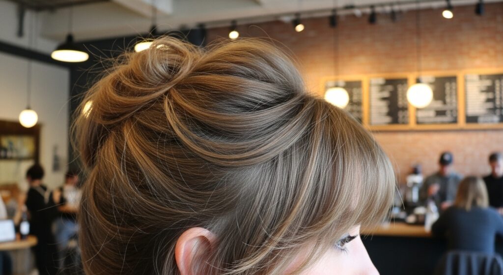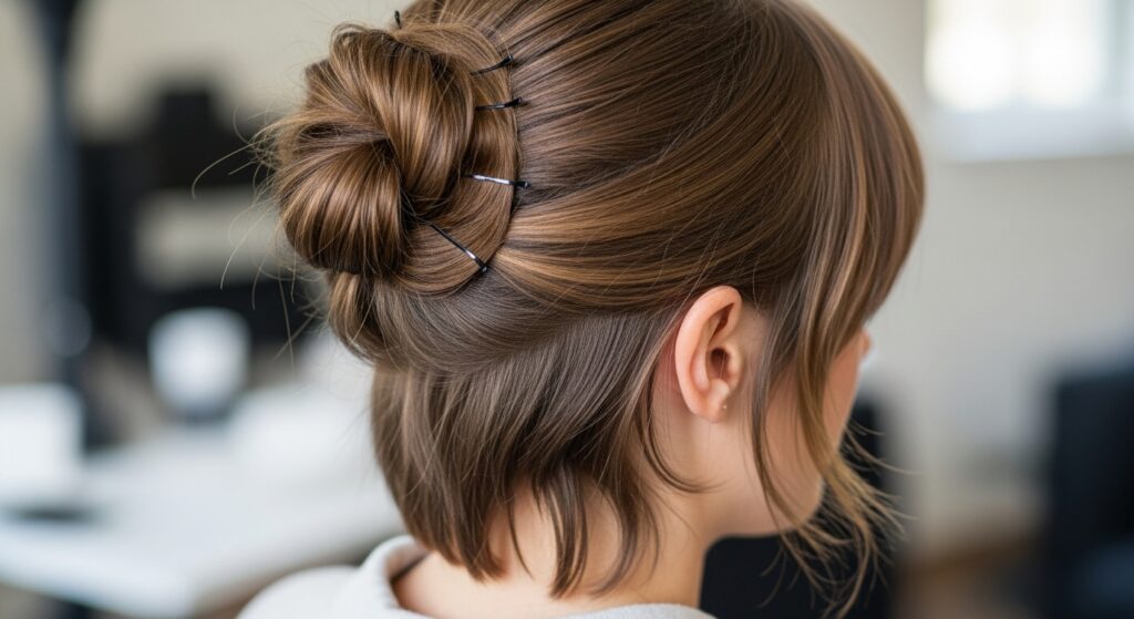 Why it works for your angled shag: This updo is specifically designed for shorter layers. Instead of fighting to hide them, it celebrates them. The pieces that fall out are part of the intended look, making it appear effortless and intentional.
