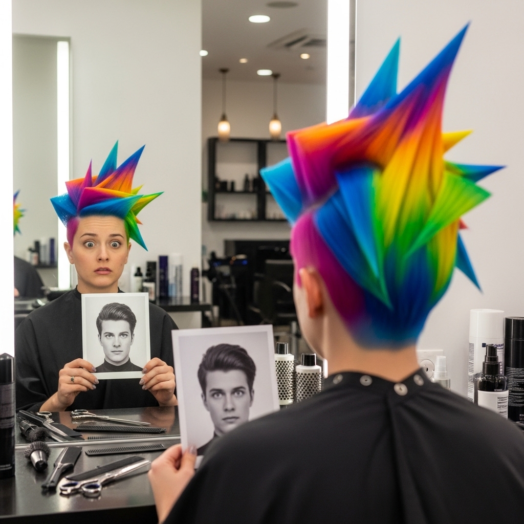 Lisa wanted a cute, low-maintenance pixie cut. Instead, she walked out with a spiky, asymmetrical creation that looked like it belonged in a contemporary art exhibit. One side was significantly longer than the other, and the top had been texturized to the point of resembling a porcupine.