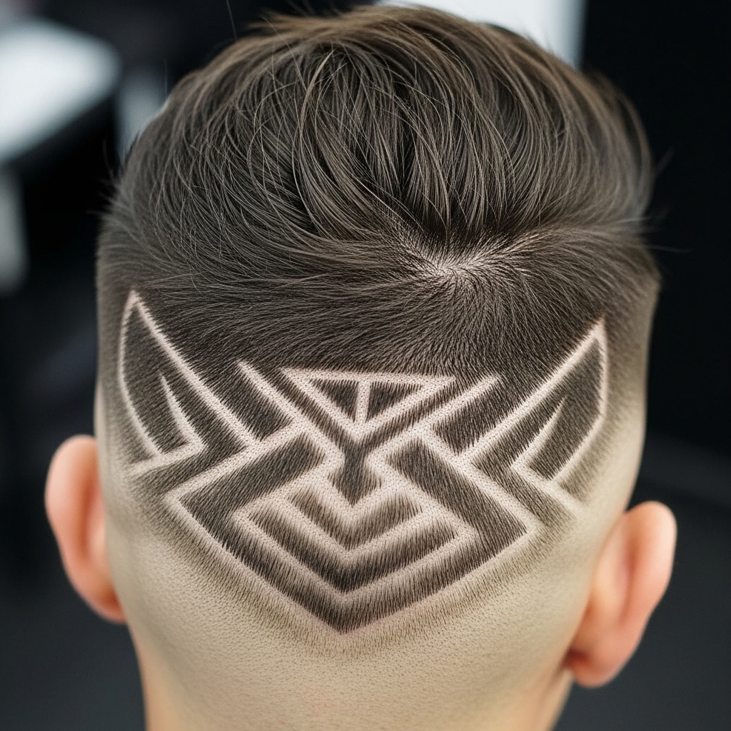 Mike requested a subtle undercut—just a little shaved section underneath for some edge. His barber, however, saw this as an opportunity to create a masterpiece. By the time the clippers stopped buzzing, Mike had an intricate geometric design shaved into the side of his head—complete with zigzags, triangles, and a tiny star near his ear.