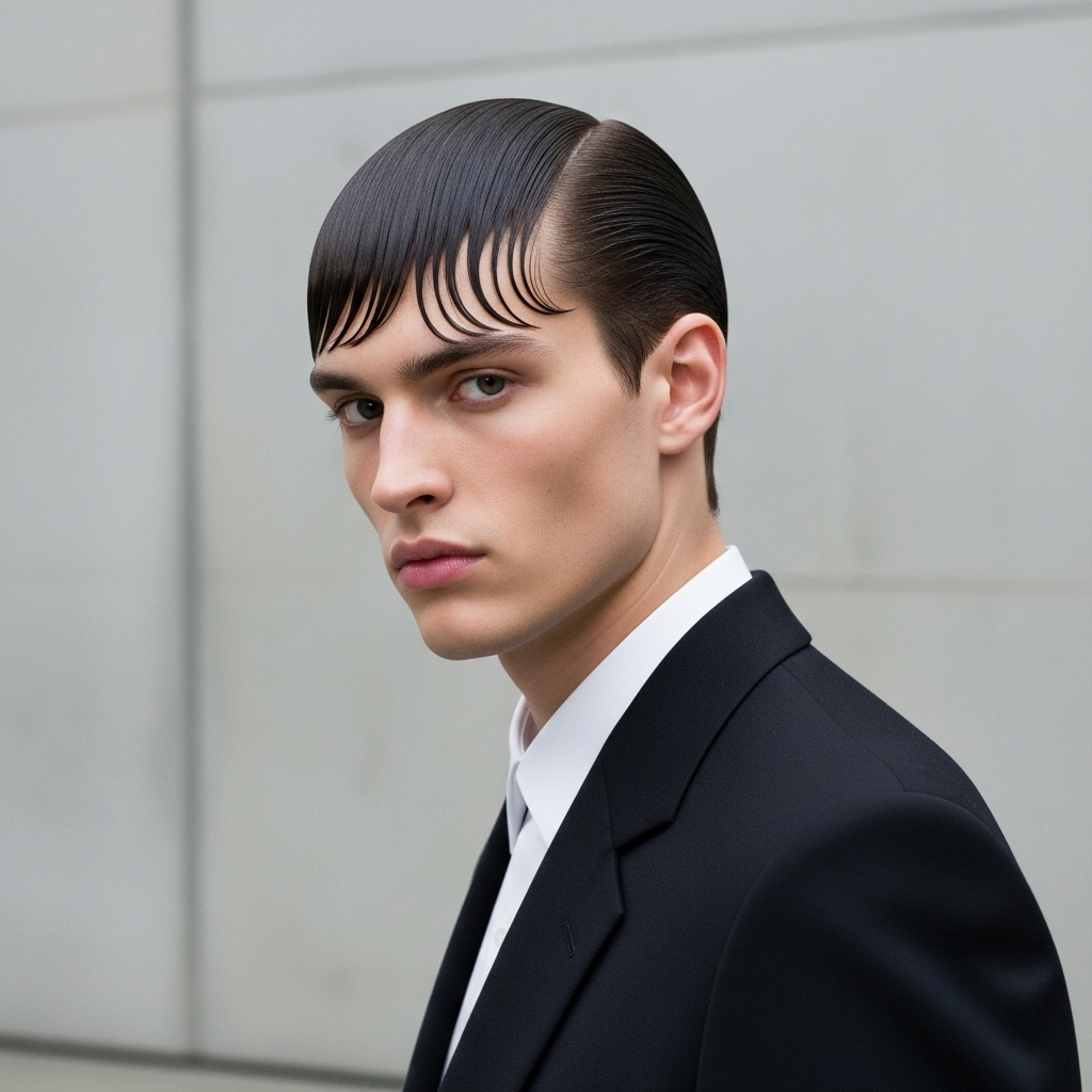 This look requires a strong-hold gel, pomade, or a dedicated edge control product. Using a toothbrush or a small, dense brush, apply the product to your bangs and the baby hairs along your hairline. Smooth your bangs directly back, blending them into the rest of your hair that you’re pulling into your chosen updo. You can create a perfectly smooth, wet-look finish, or for a more modern take, slick them back but allow for a little texture and separation for a “lived-in” slickback. This style is bold, confident, and guarantees your bangs will stay perfectly in place all day or night.