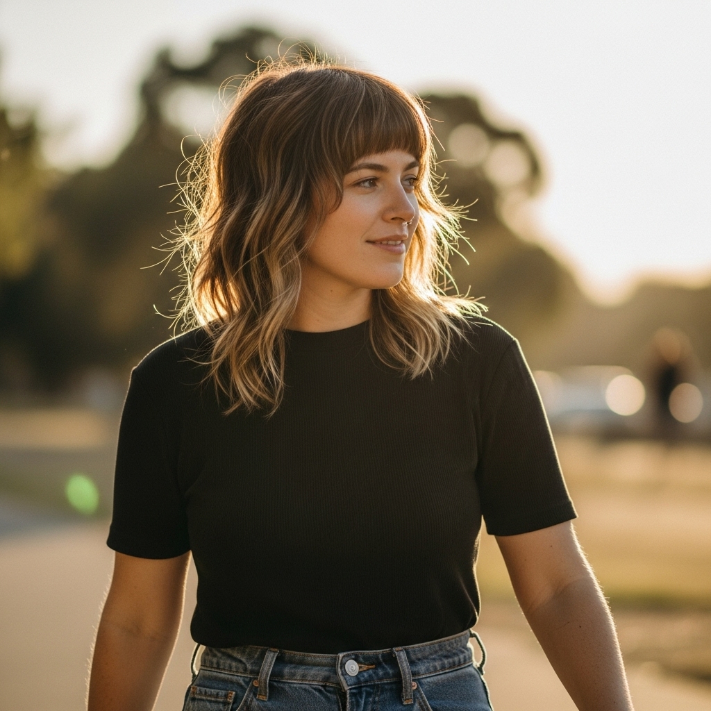 This look is perfect for casual weekends, running errands, or a relaxed beach day. It embodies that “I woke up like this” vibe that is incredibly chic and low-maintenance. The goal is soft, touchable bangs that frame your face without looking overly done.