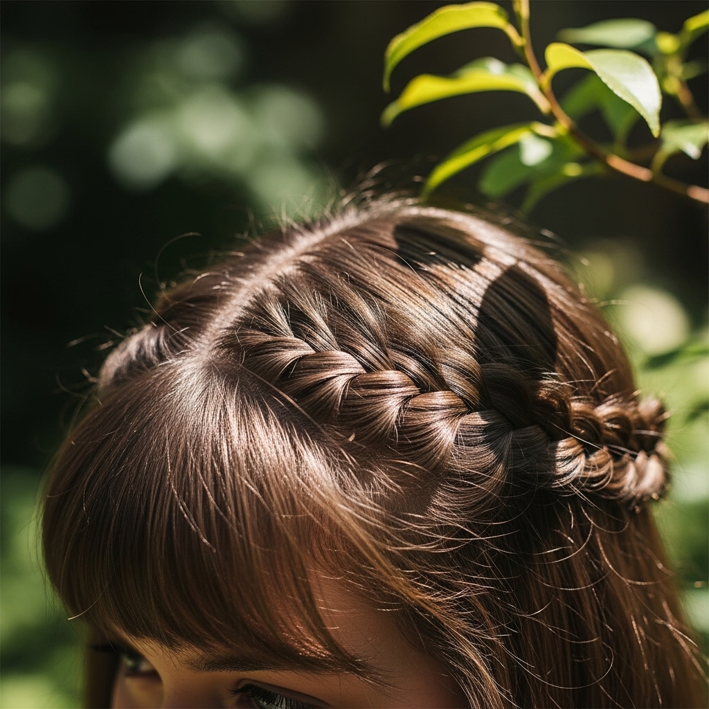This intricate look is beautiful for weddings, garden parties, brunches, or any special daytime event. It’s a feminine and elegant way to manage your bangs while adding a unique detail to your hairstyle.