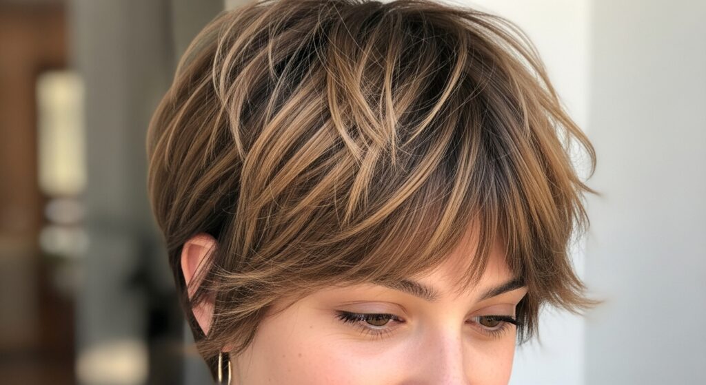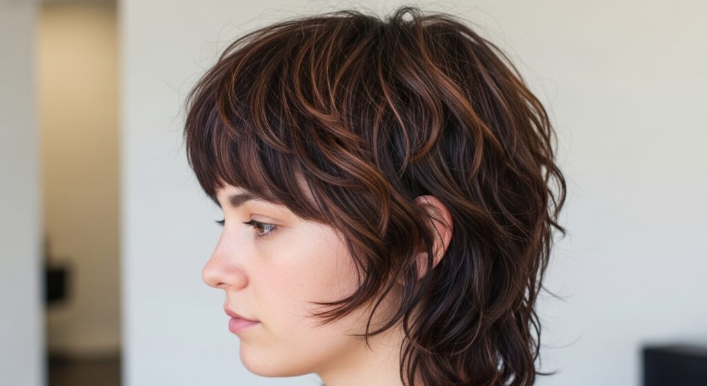 For the short-haired among us, the shag still has plenty to offer. The Wispy Pixie Shag is the ultimate cool-girl short cut. It deconstructs the traditional, sleek pixie by adding choppy, textured layers throughout. The crown is left full and voluminous, while the sides and back are cut with a softer, more irregular finish. Wispy, piece-y bangs are a key feature, adding a touch of softness and mystery. It’s a cut that looks incredible with a bit of bedhead.