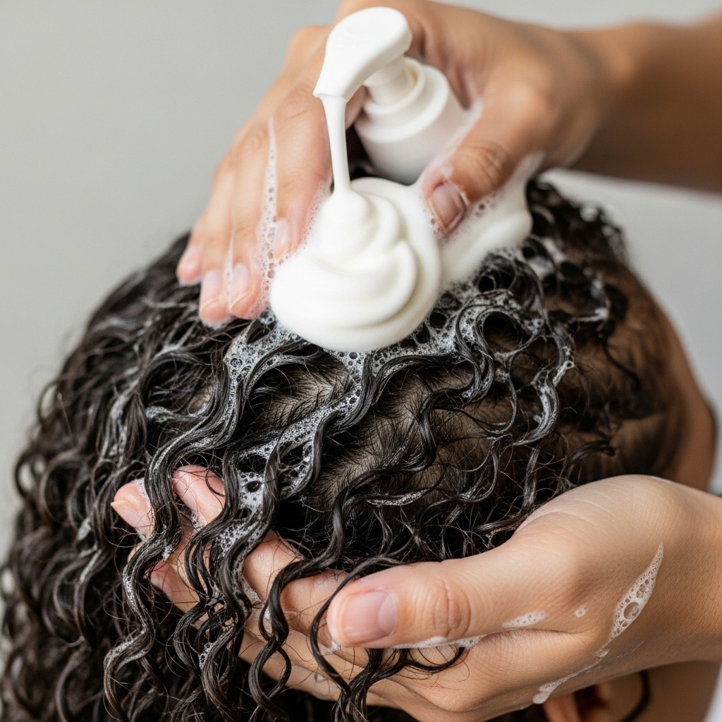 - Apply a small amount of sulfate-free shampoo, focusing on the scalp.