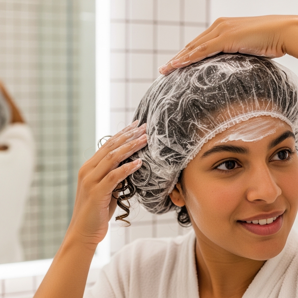 - Cover with a shower cap and let it sit for 15-30 minutes.