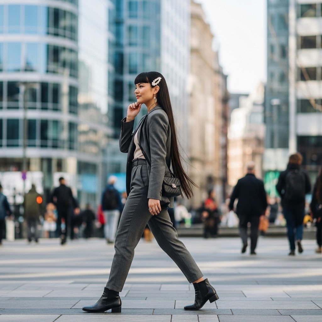 Fashion is all about playful mixing. This look takes the drama of the vampire haircut, the polish of old money hair, and the fun of Y2K accessories and mashes them together perfectly.
