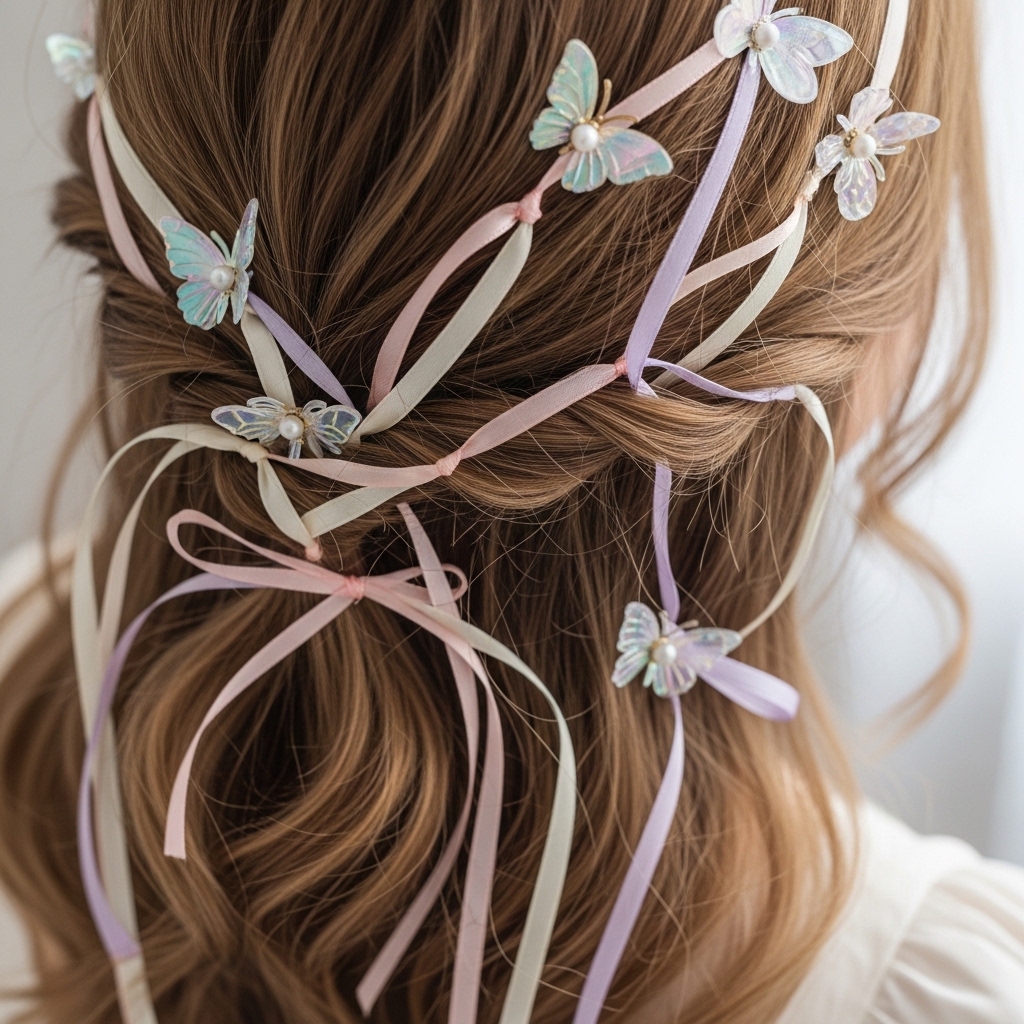 Swap out or complement your butterfly clips with thin satin ribbons. After clipping, weave a ribbon through the clips or tie it around the base where the clips sit.