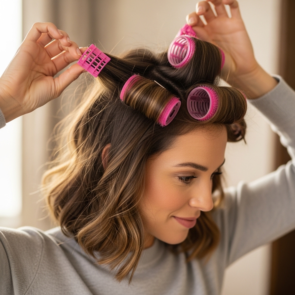 The heat from your scalp helps set the style, and the results last surprisingly long. Use smaller rollers at the crown for extra lift where you need it most.