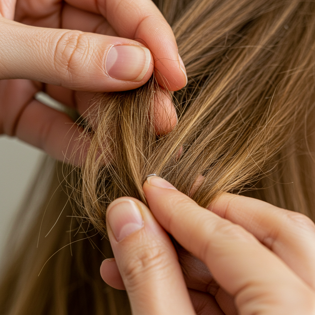Examine your ends under good lighting. Gently twist small sections – white dots or fraying indicate early splitting. This is the best stage for repair.