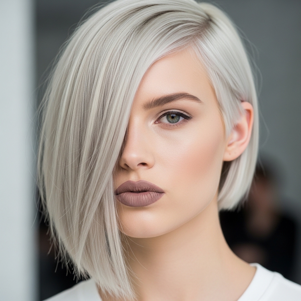 Ask for a lob that’s shorter in the back and longer in the front. Then, color it with a stark contrast: a smoky ash blonde on one side and a bright, clean platinum on the other. The sharp cut makes the color divide feel intentional and fashion-forward.