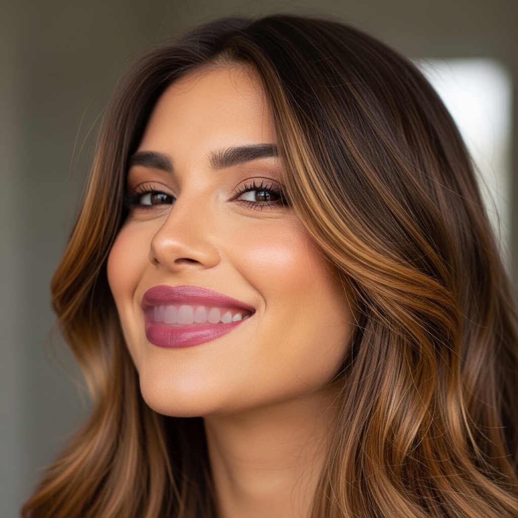 With this tonal hair, your lip can be a simple, glossy neutral with a slight pink undertone. It keeps the focus on the beautiful, complex play of light in your hair. It’s quiet luxury at its finest.