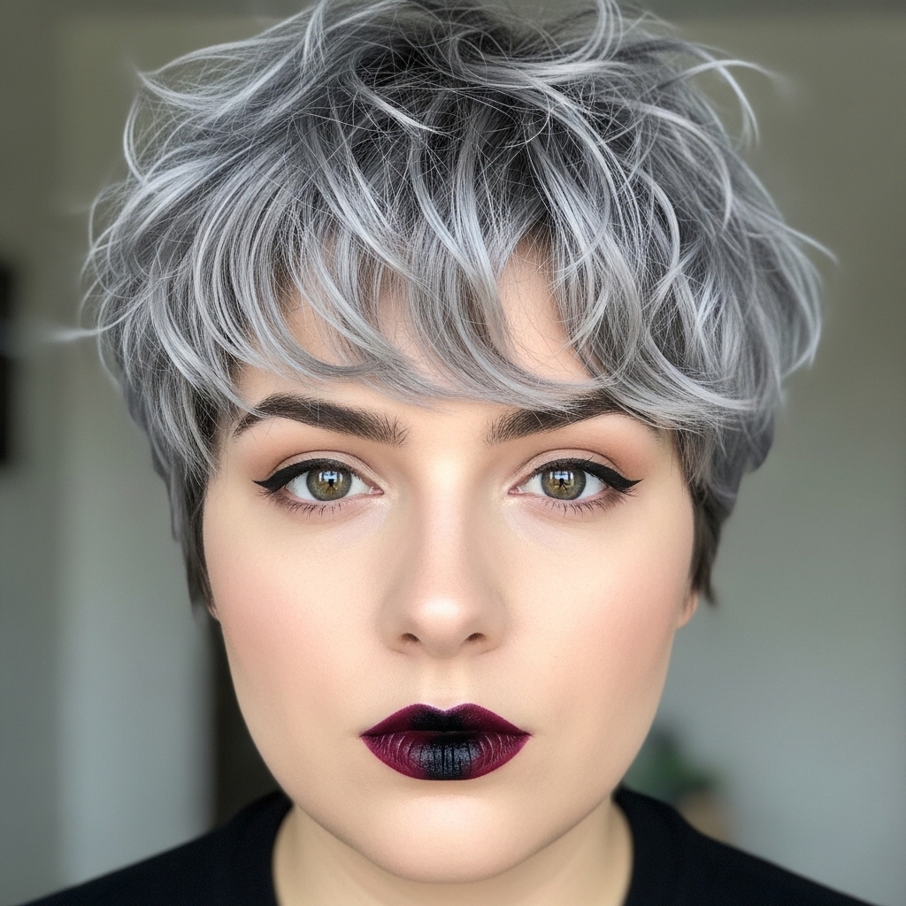 Softening this edgy cut is easy with a soft, peachy lip gloss. It adds a touch of freshness and warmth to the face, balancing the cooler, messier hair vibe. It’s the perfect “I woke up like this” combo.