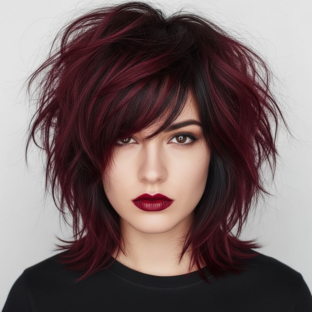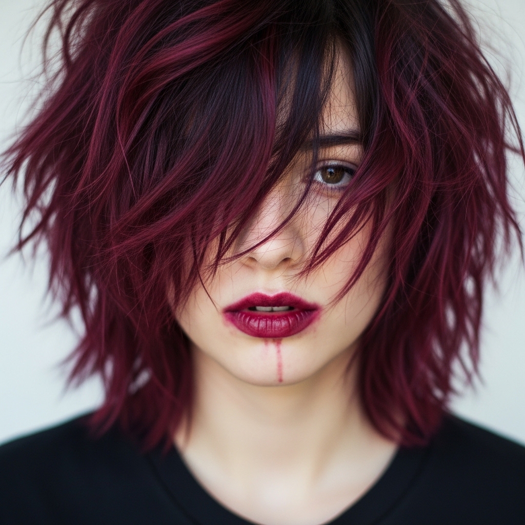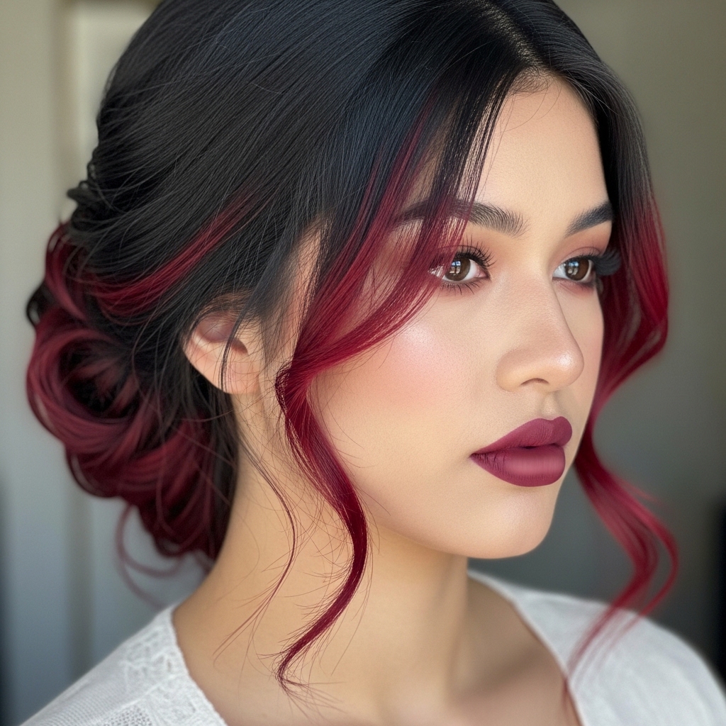 Then, add thick, face-framing pieces in a vibrant, dark ruby red or a mysterious plum. Keep the rest of the style soft – think loose waves or a half-up style with tendrils.