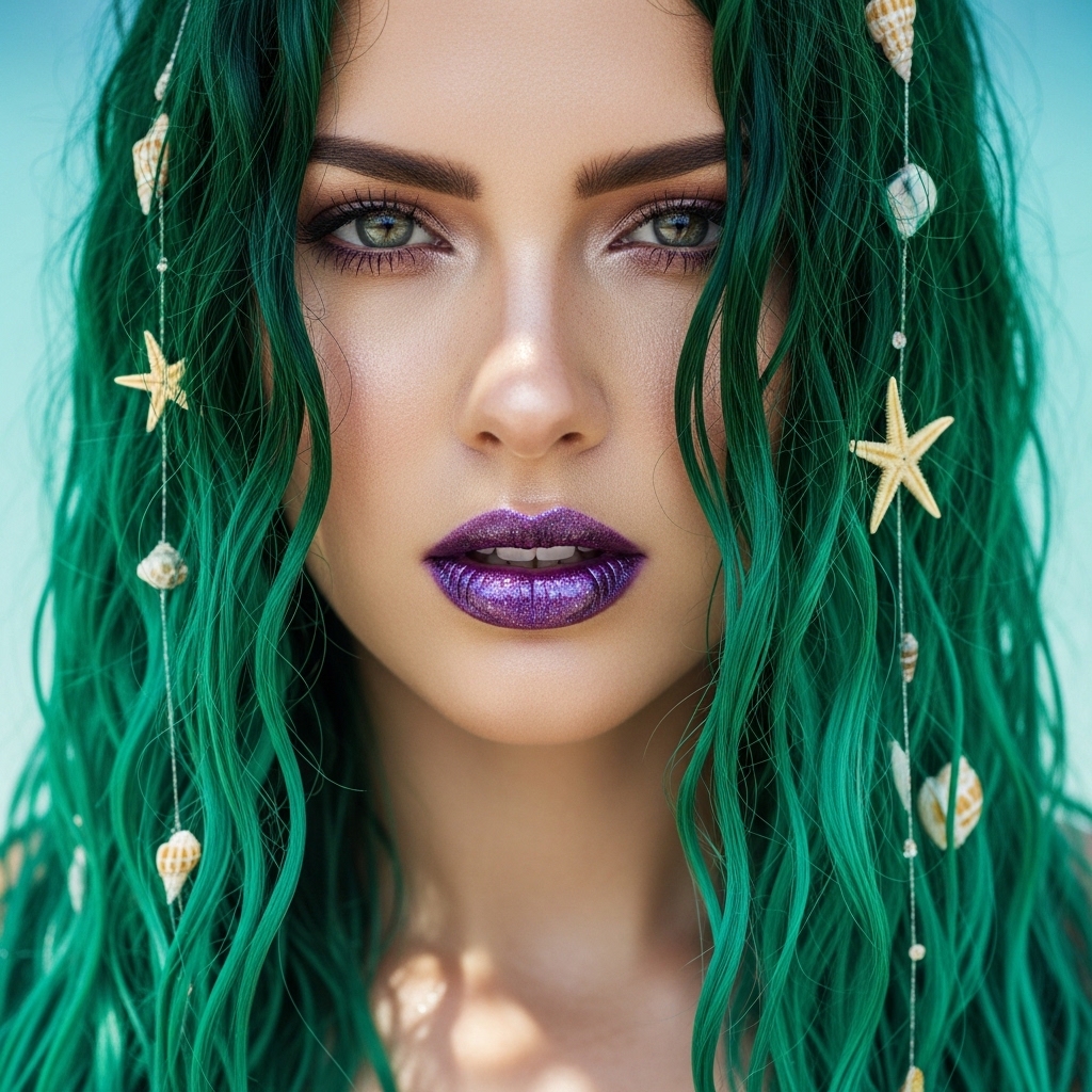 Instead of a green lip (which can be tricky), choose a lip color that picks up the teal’s vibrancy. A deep, shimmery blue-based purple lip gloss creates a harmonious, magical effect. You’ll look like a fantasy character in the best way.