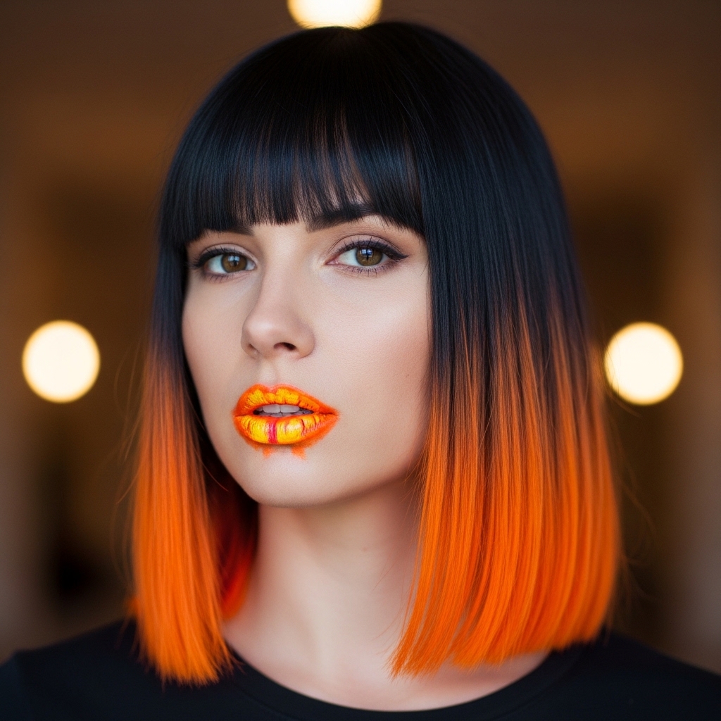 Then, just the tips of your hair—whether it’s a lob or long hair—are dyed a vibrant, neon orange. It looks like the ends of your hair are on fire.