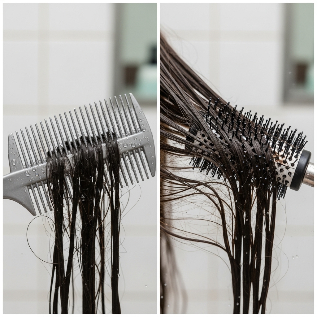 Solution: Use a wide-tooth comb or a detangling brush on wet hair. Start from the ends and work your way up gently.