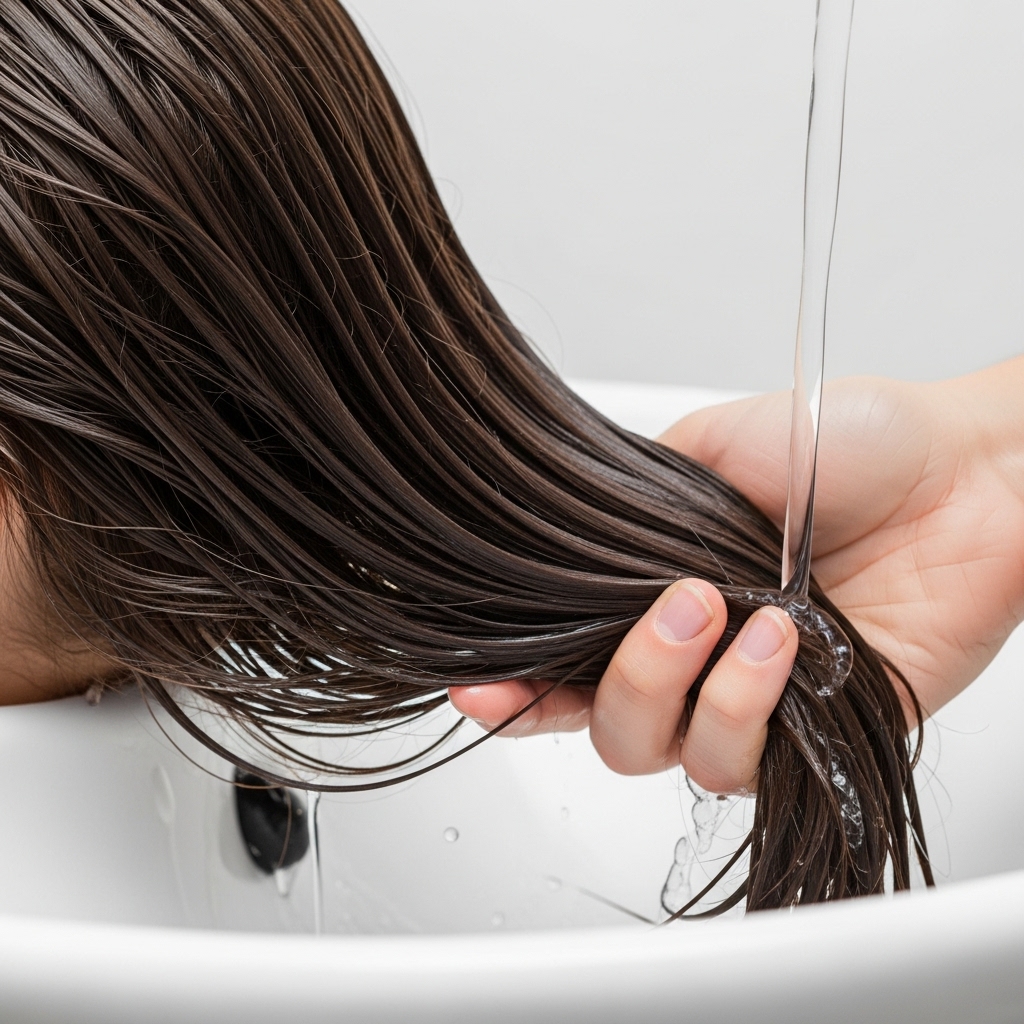 7. Rinse thoroughly: Use lukewarm water until it runs clear, then apply the included conditioner.