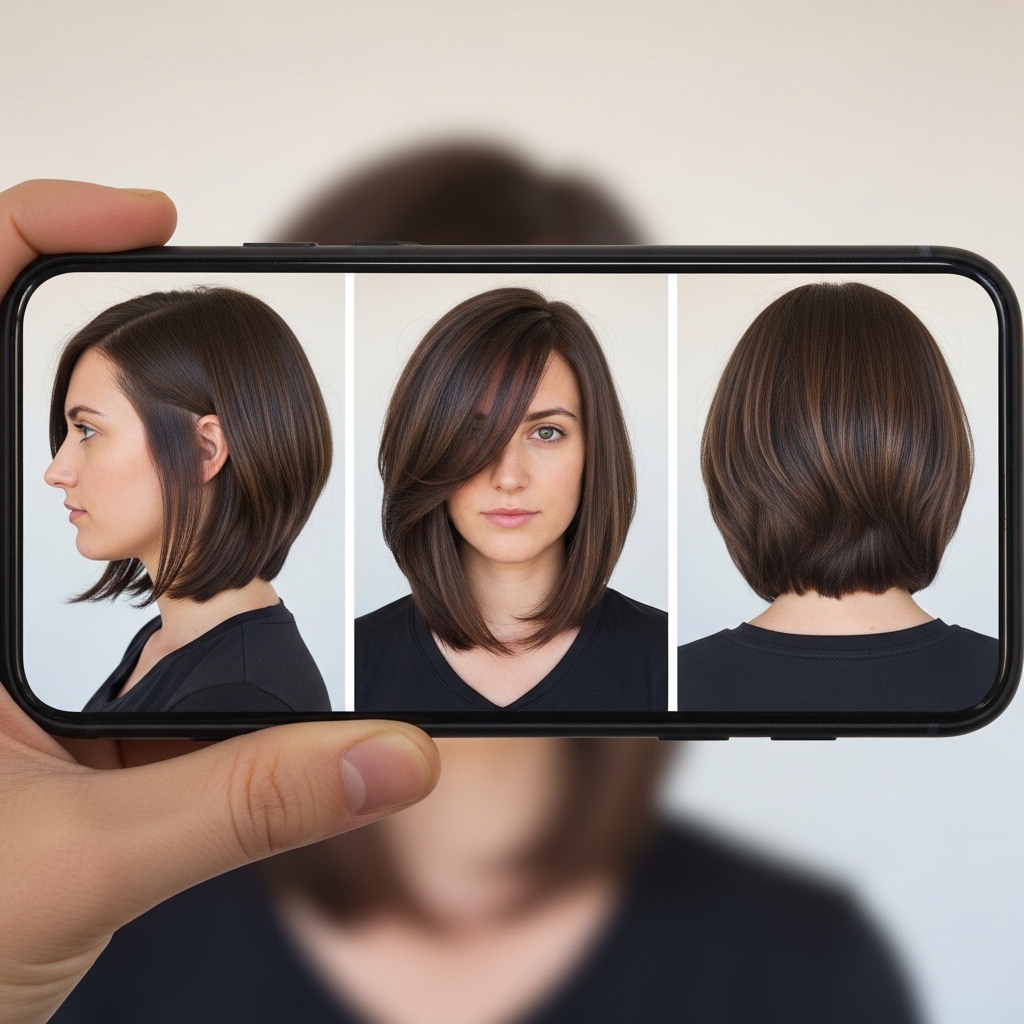And one from the side or back to show the shape and layers you like. Do you want a stacked back? Soft layers? A blunt undercut? Photos make your vision crystal clear.