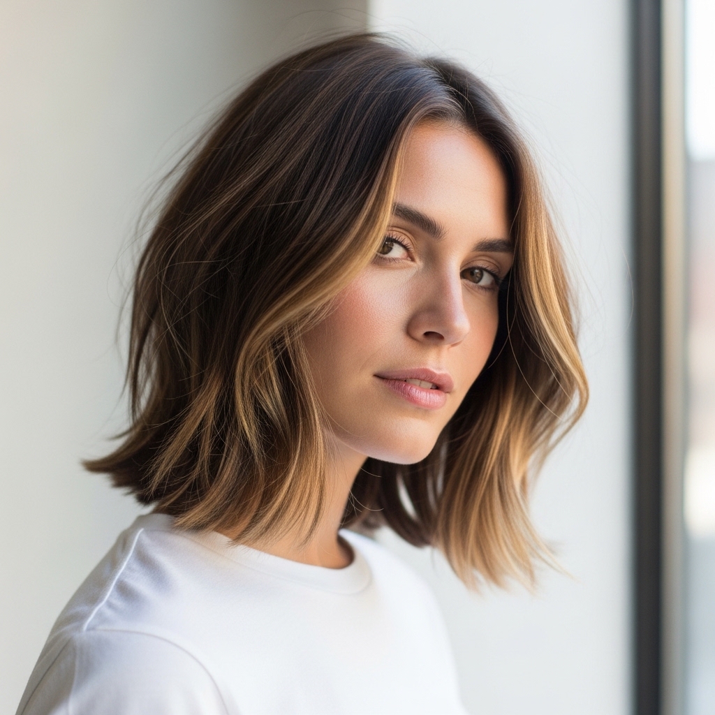 This cut is a chameleon! For that old money hair look, go for rich, solid colors like chestnut or dark blonde with subtle highlights.