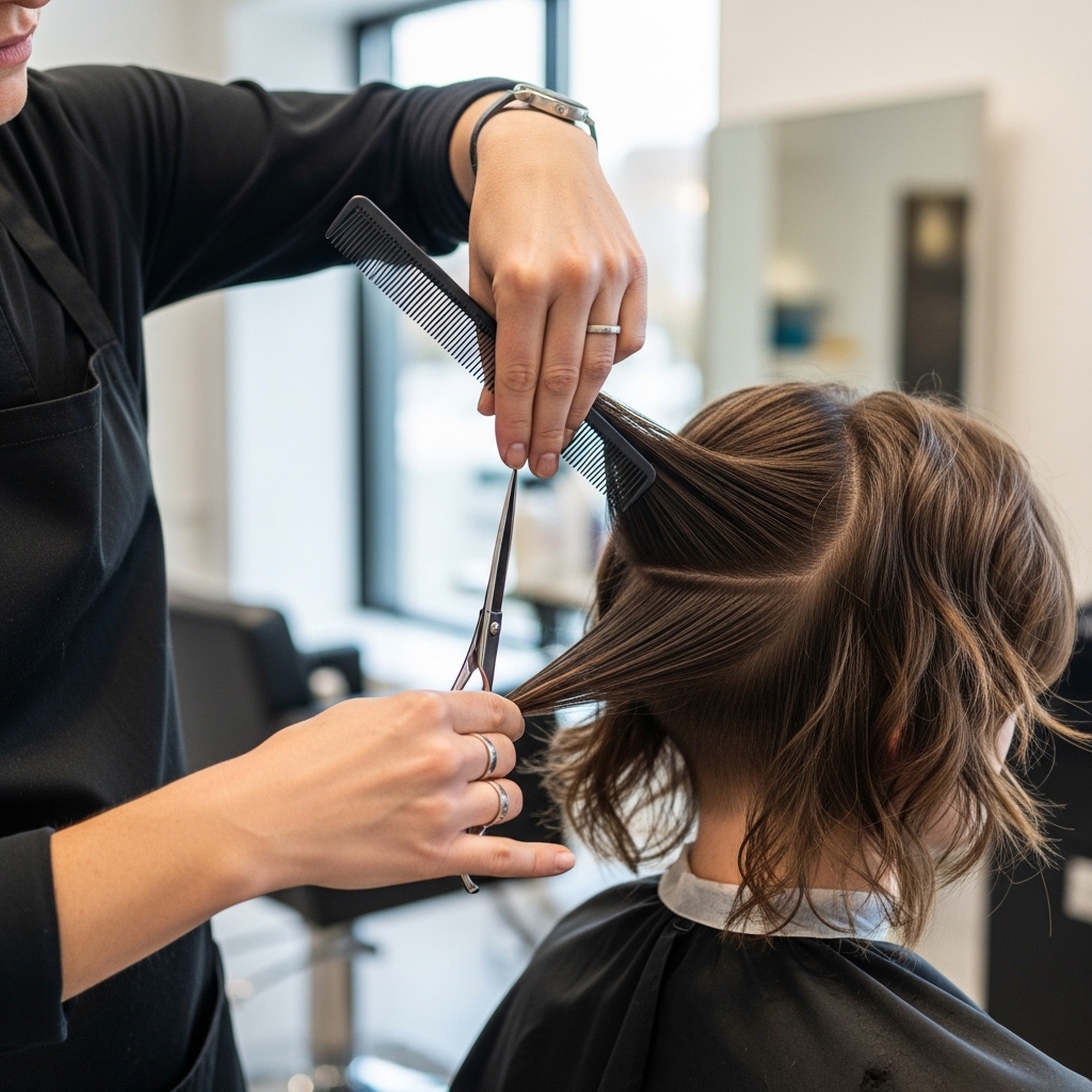 While every stylist has their method, the cut often starts on dry hair. This lets them see your natural texture and how the hair falls. They’ll usually establish the longer length first.